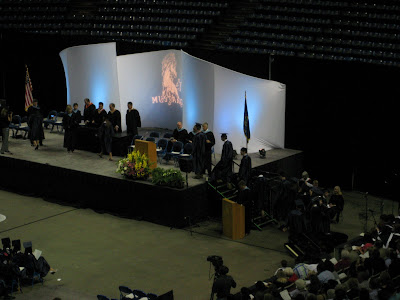 I didn't take the Rebel with me, just my little Canon. It is so slow that I missed her actual walk! Look at that big class of graduates! They were a rowdy bunch too. I lost count of how many beach balls and balloons the "graduate guards" took away during the ceremony--it was entertaining.
